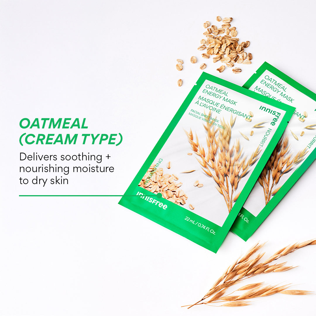 1 Oatmeal Energy Sheet Mask to deliver soothing + nourishing moisture to dry skin
